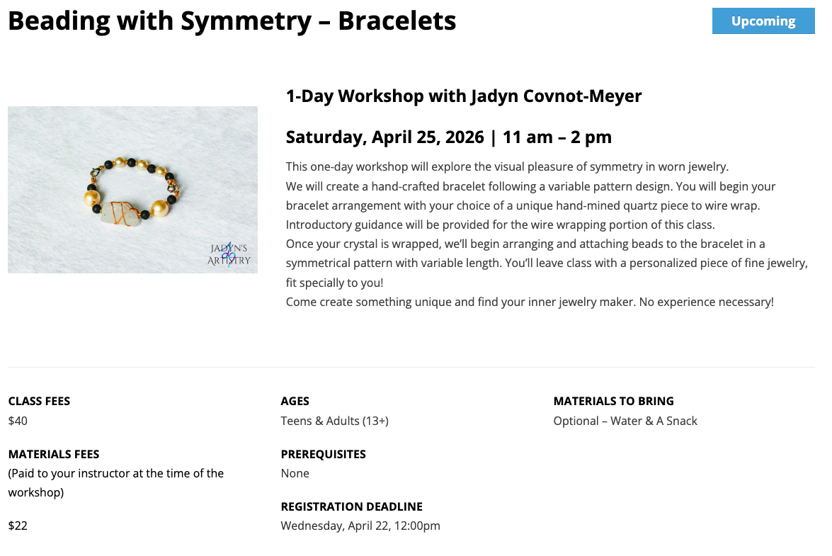 Jansen Art Center - February Beading With Symmetry - Wire-Wrap Bracelets Instructor